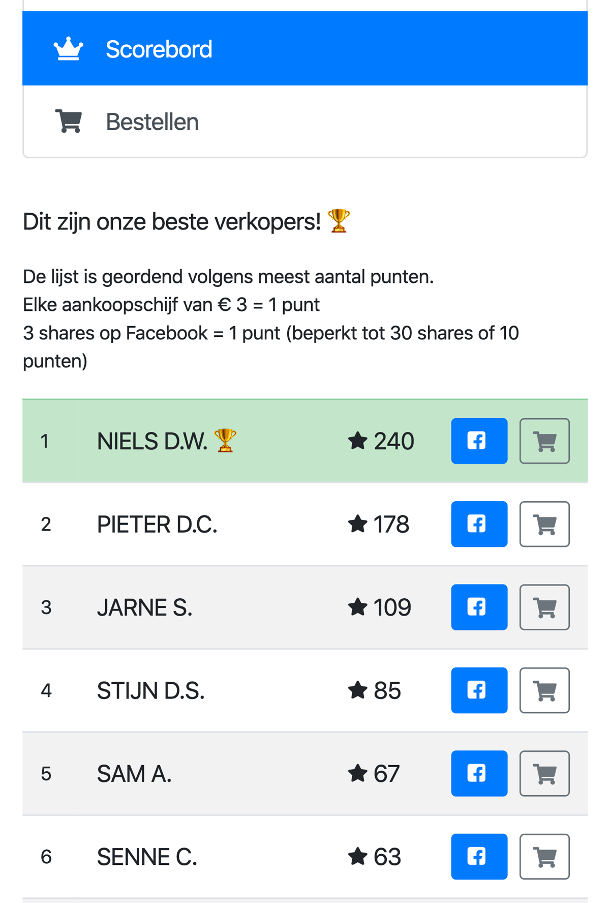 Maak je eigen webshop met scorebord op trooper.be/verkoopactie.